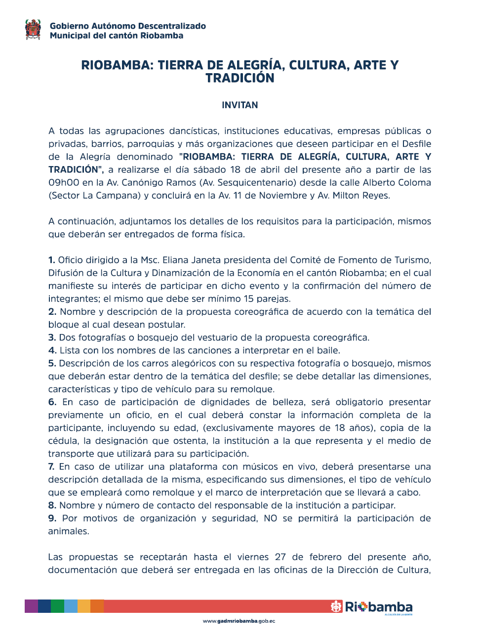 El Municipio de Riobamba, a través de la Dirección de Servicios Municipales y...