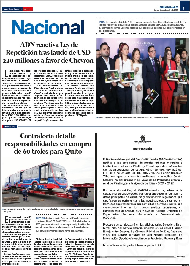 La Alcaldía de la Gente, liderada por el alcalde John Vinueza Salinas,...