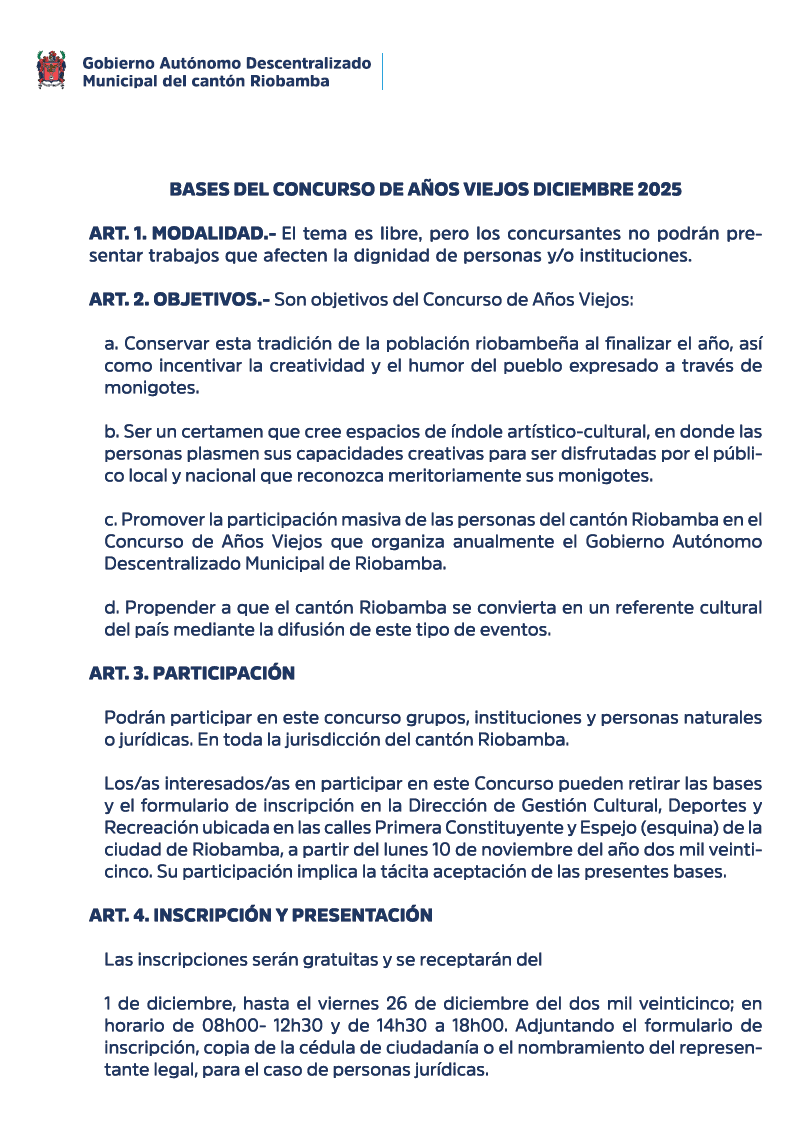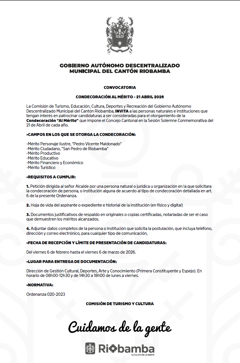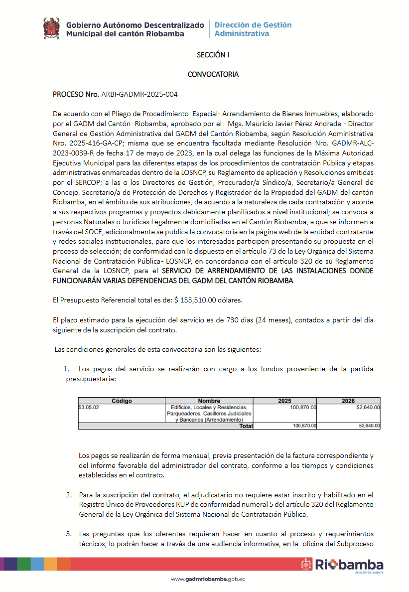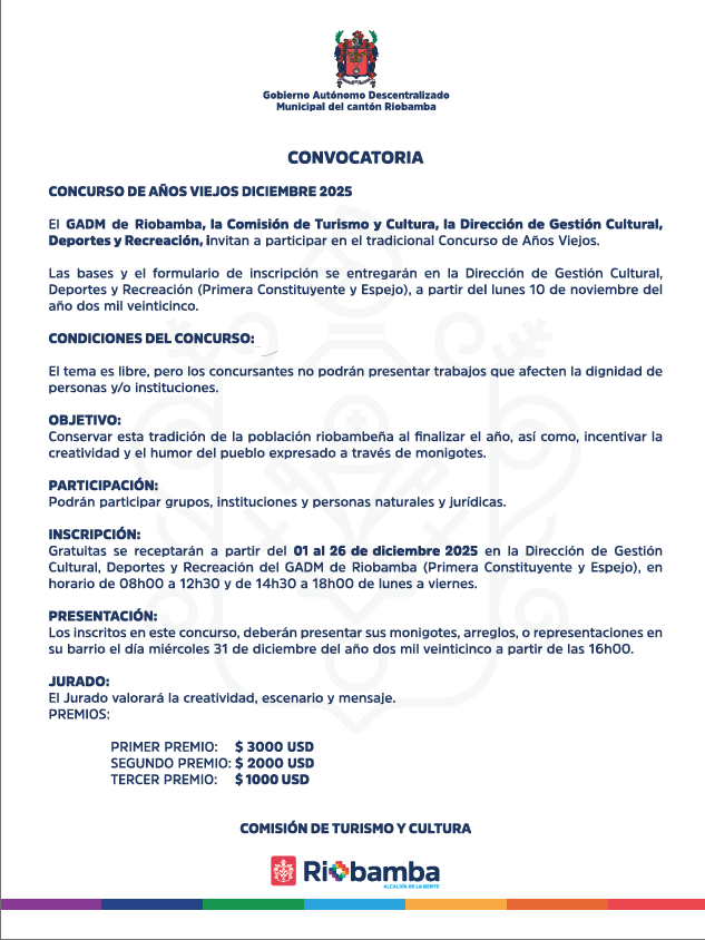 El Municipio de Riobamba, a través de la Dirección de Gestión de Patrimonio,...