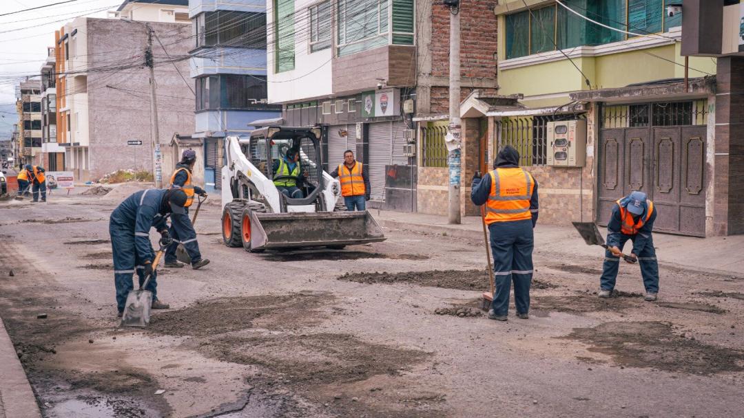 Municipio de Riobamba implementa trabajos temporales de bacheo ante escasez de asfalto.