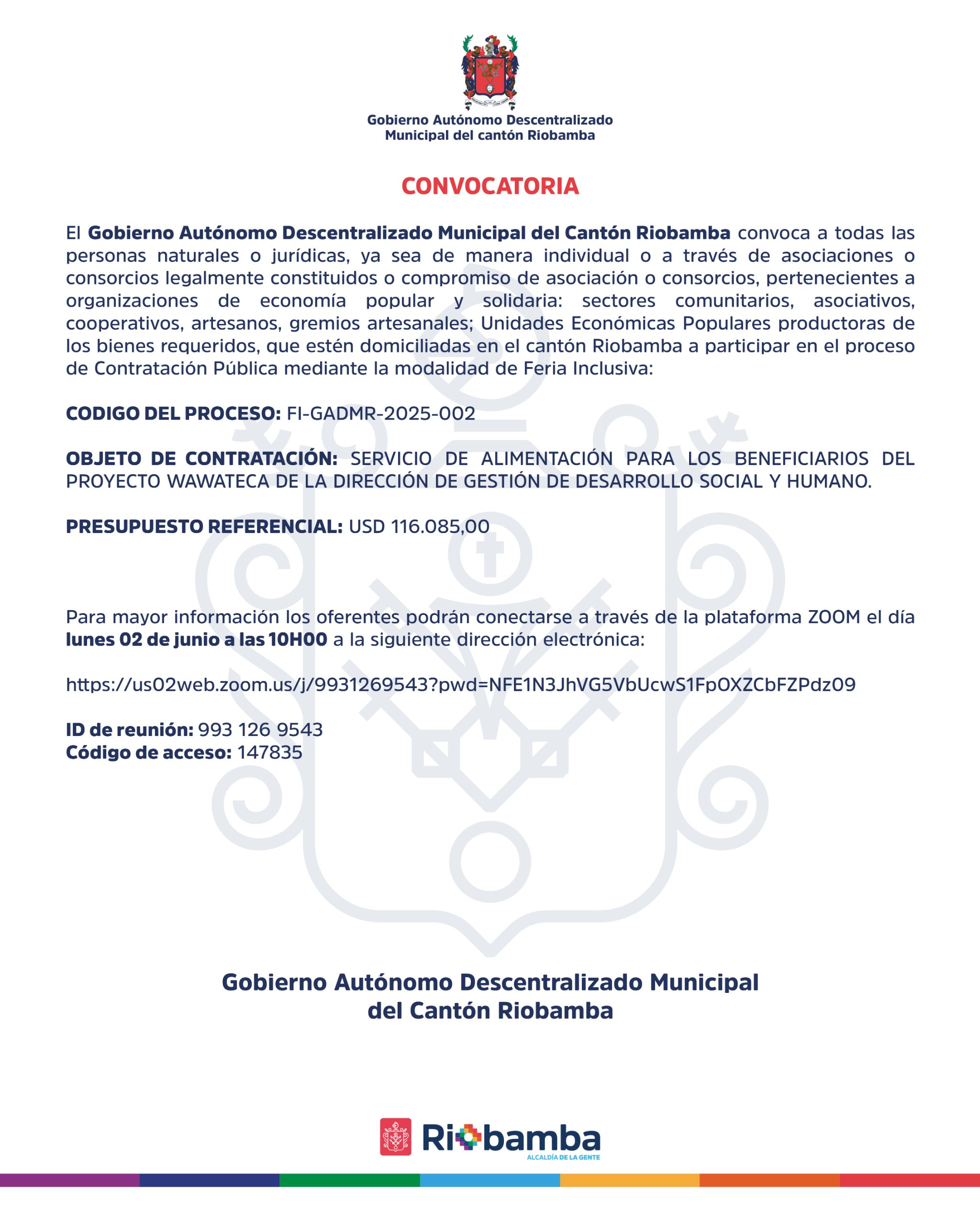 CONVOCATORIA - Servicio de alimentación de Wawateca