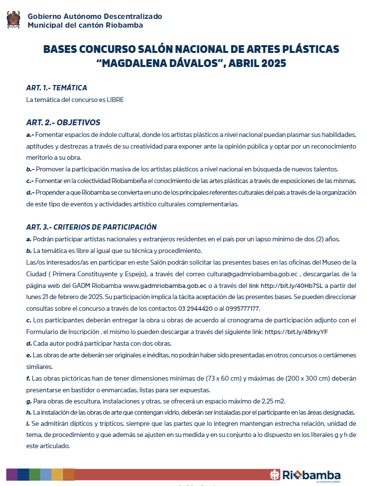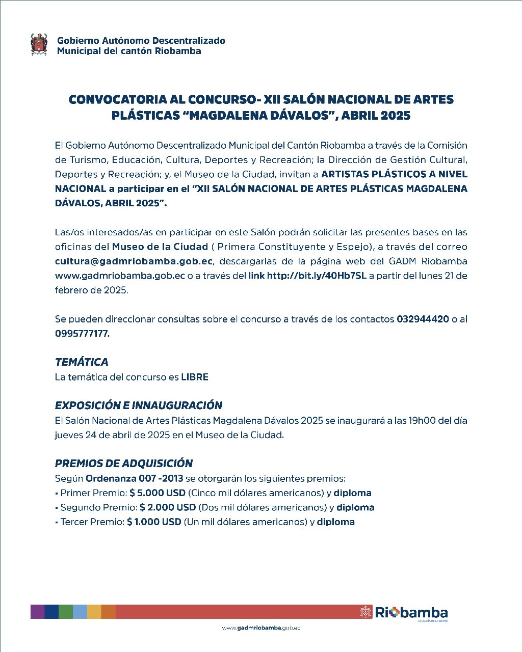 CONVOCATORIA - Concurso de artes plásticas "Magdalena Dávalos"