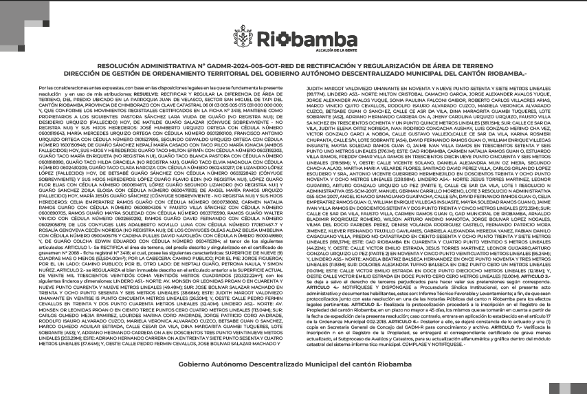 Res. Administrativa 2024-005-GOT-RED - Rectificación y Regulación de Área de Terreno
