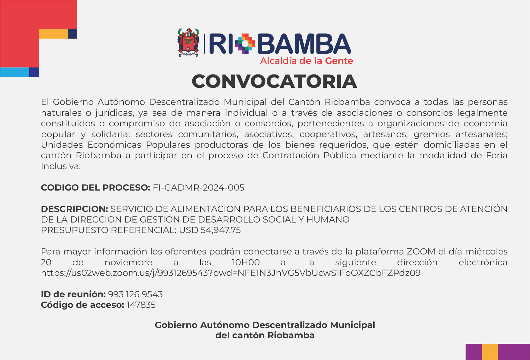 CONVOCATORIA - Servicio de Alimentación