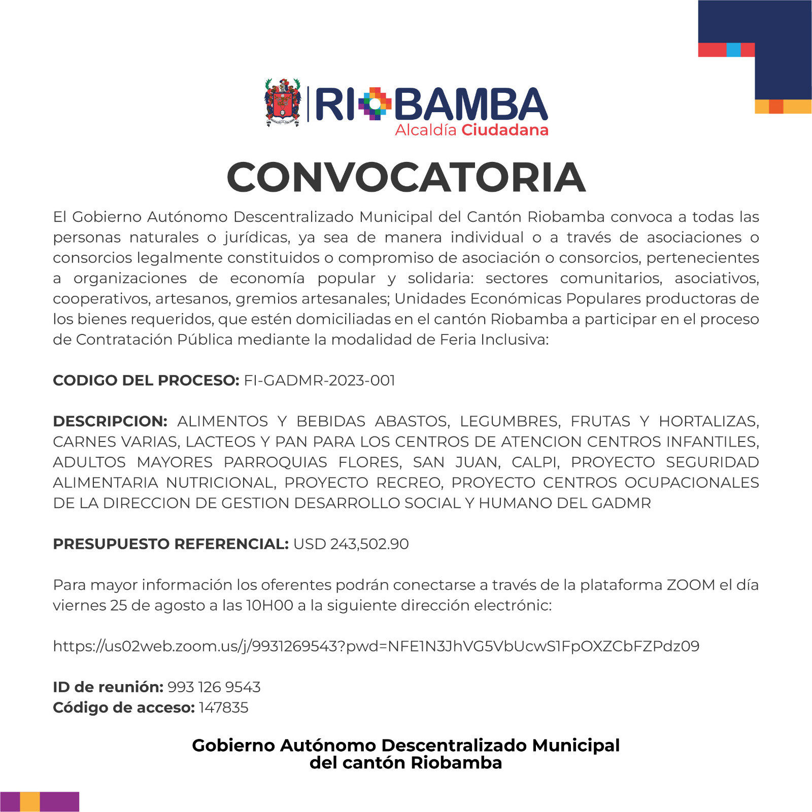 FI-GADMR-2023-001 - ALIMENTOS Y BEBIDAS ABASTOS, LEGUMBRES, FRUTAS Y HORTALIZAS, CARNES VARIAS, LACTEOS Y PAN PARA LOS CENTROS DE ATENCION CENTROS INFANTILES, ADULTOS MAYORES PARROQUIAS FLORES, SAN JUAN, CALPI, PROYECTO SEGURIDAD ALIMENTARIA NUTRICIONAL